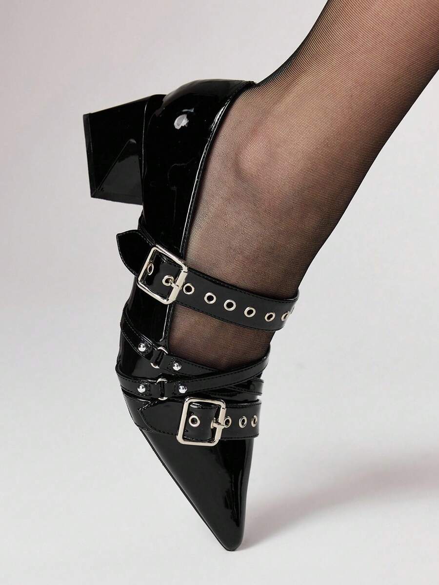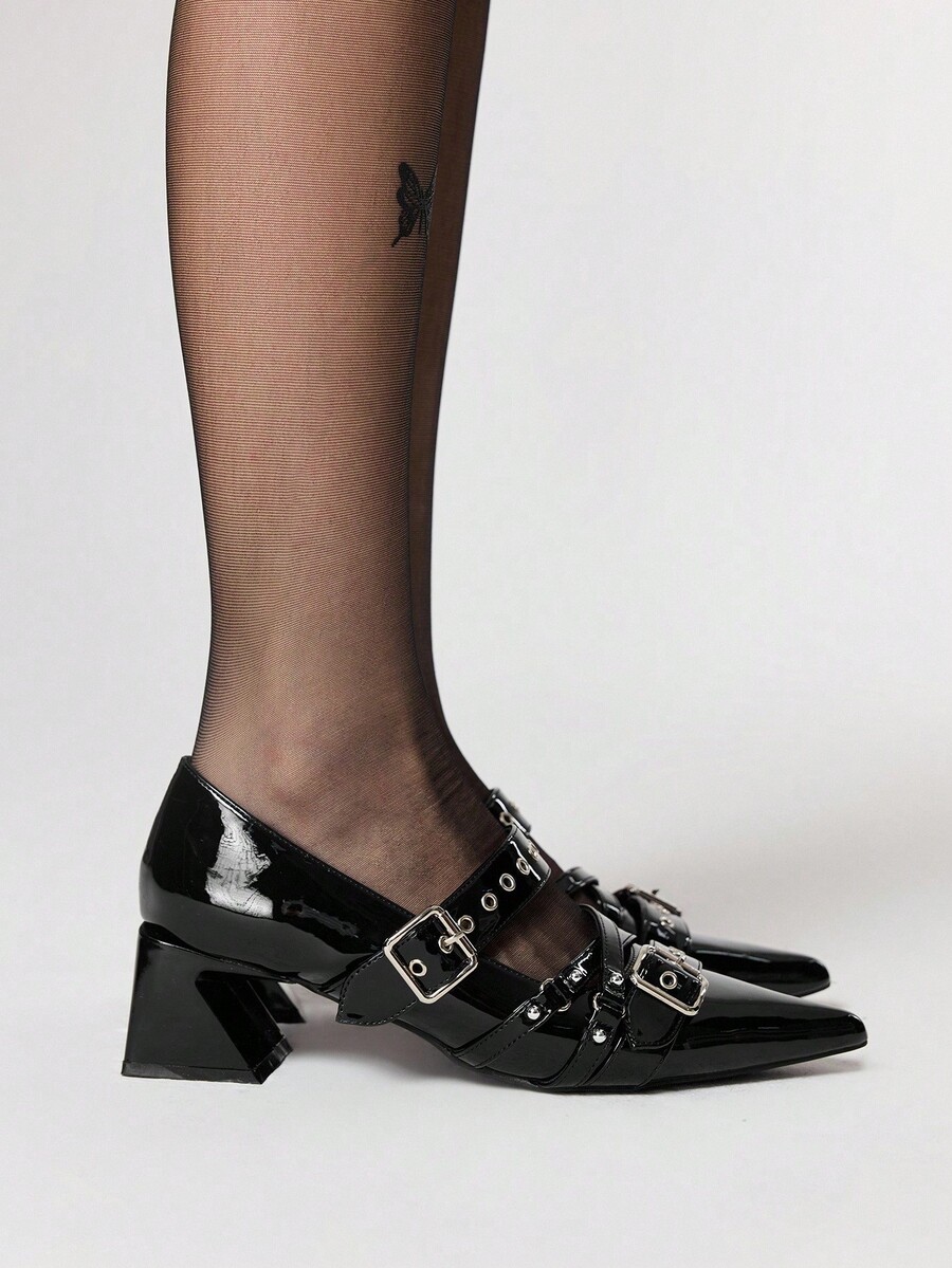 Grunge Punk Elegant Pointed Toe Chunky Heel Lacquer Leather Pumps