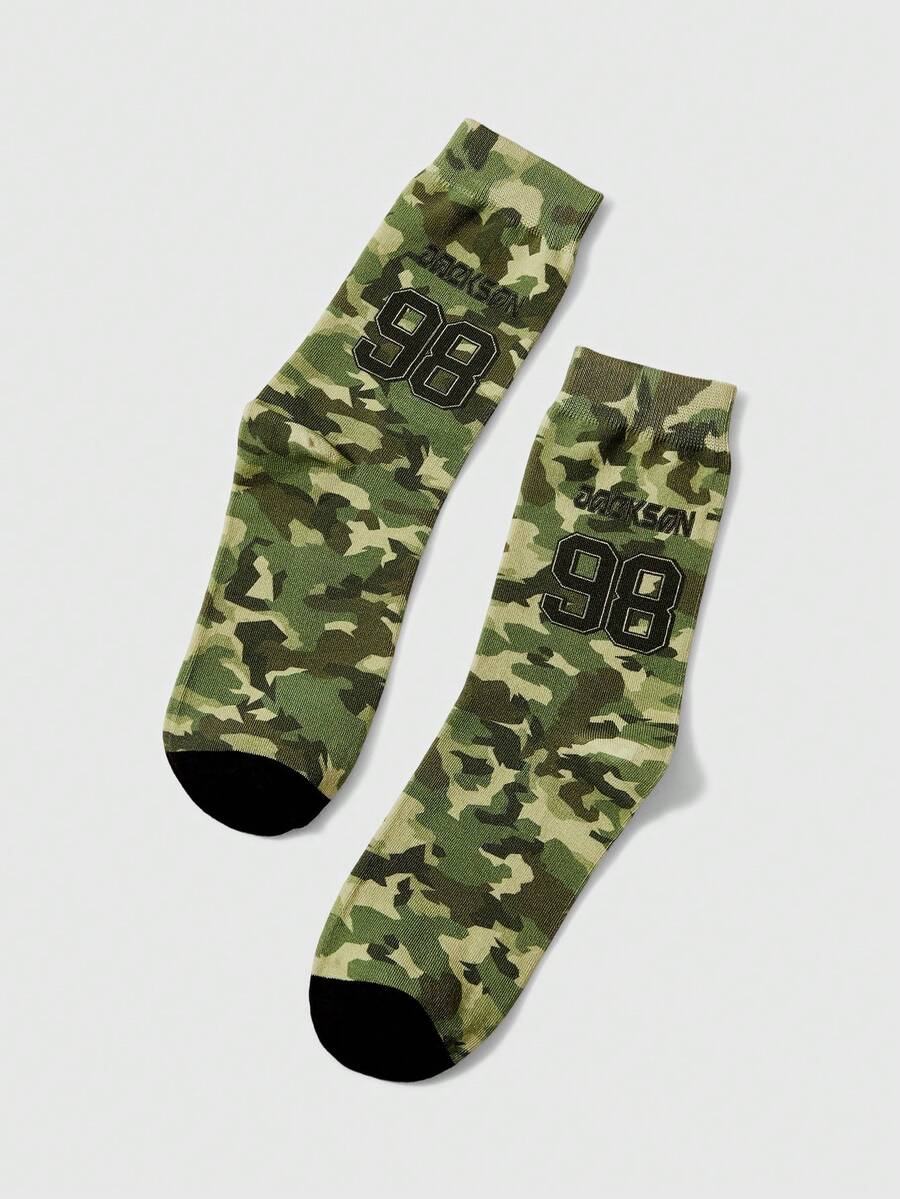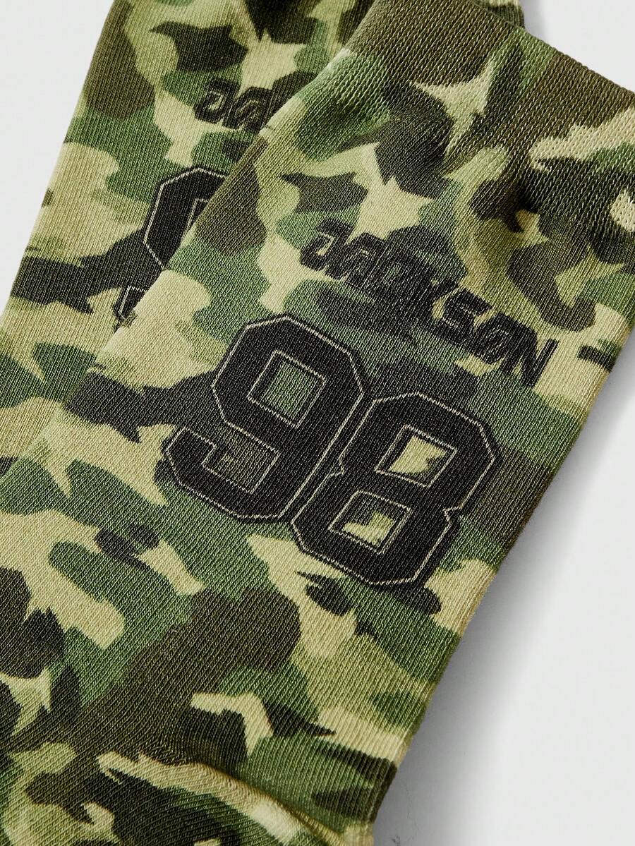 Grunge Punk Fashionable Camouflage American Number Pattern Comfortable Mid-Calf Socks For Women