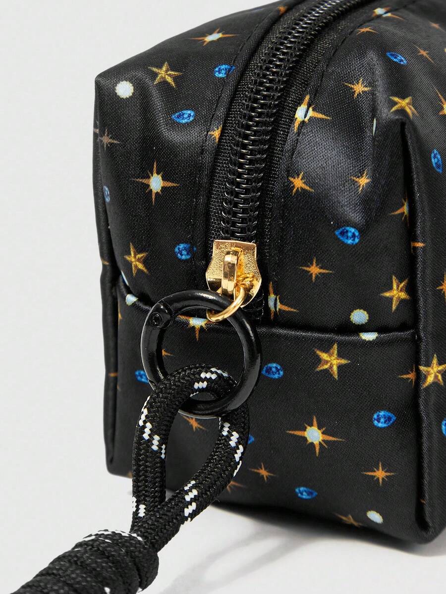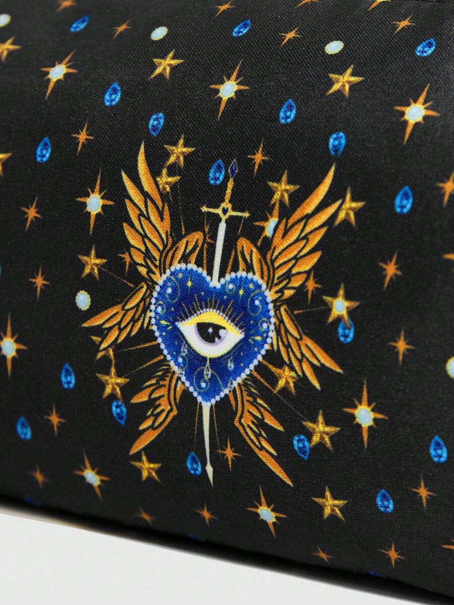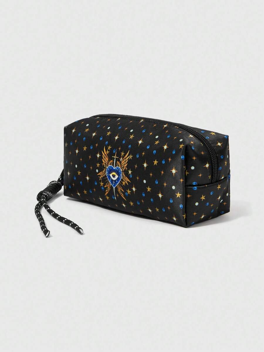 Grunge Punk Fashionable Embroidered Heart, Eye, Wing Pattern Compact Cosmetic Bag, Portable Travel Organizer Pouch
