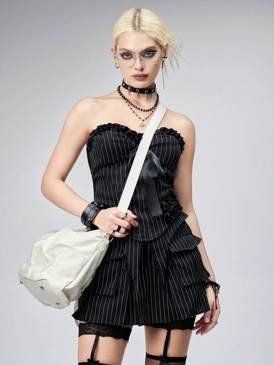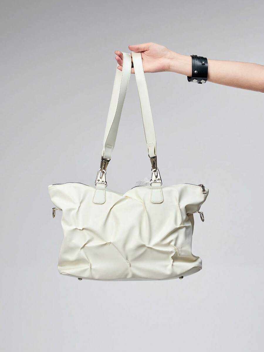 Grunge Punk Fashionable Multi-Purpose Pleated Tote Bag, Large Capacity Shoulder Crossbody Bag For Women, White