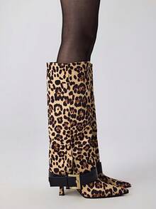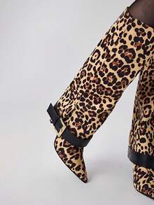 Grunge Punk Fashionable Women's Leopard Print Buckle Thigh High Boots