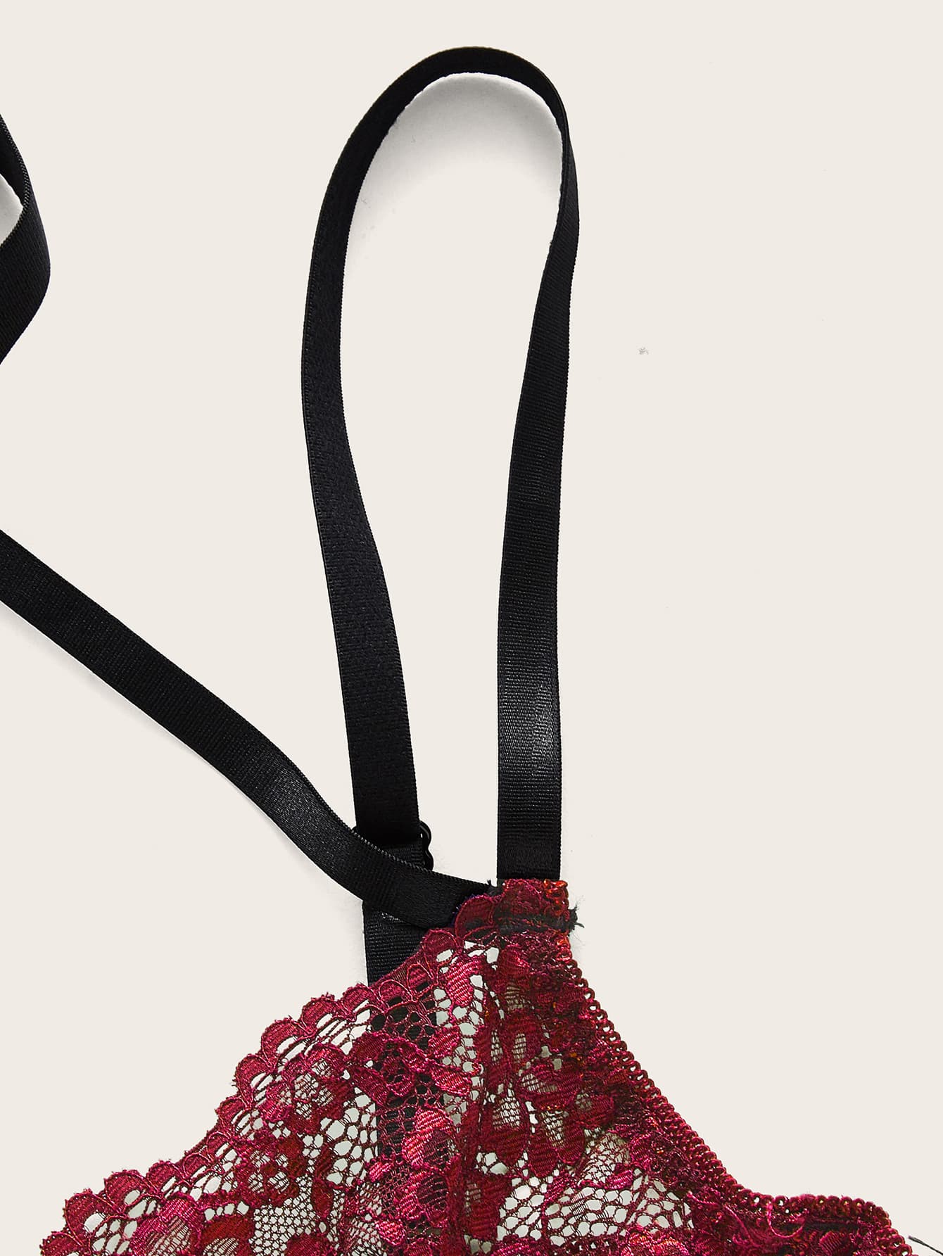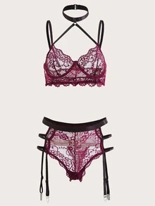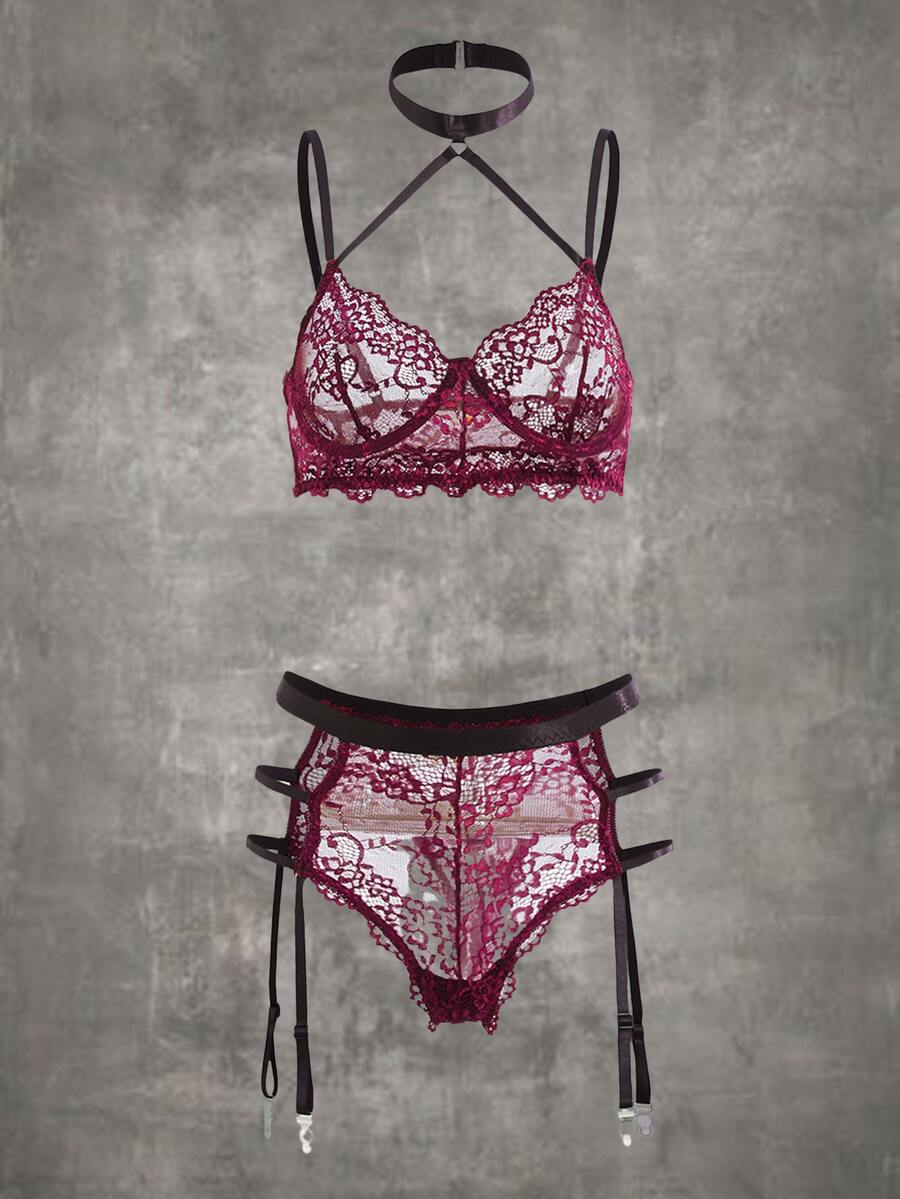 Grunge Punk Floral Lace Underwire Garter Lingerie Set