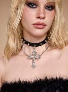 Grunge Punk Gothic Cross Studded Leather Choker Necklace