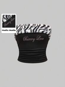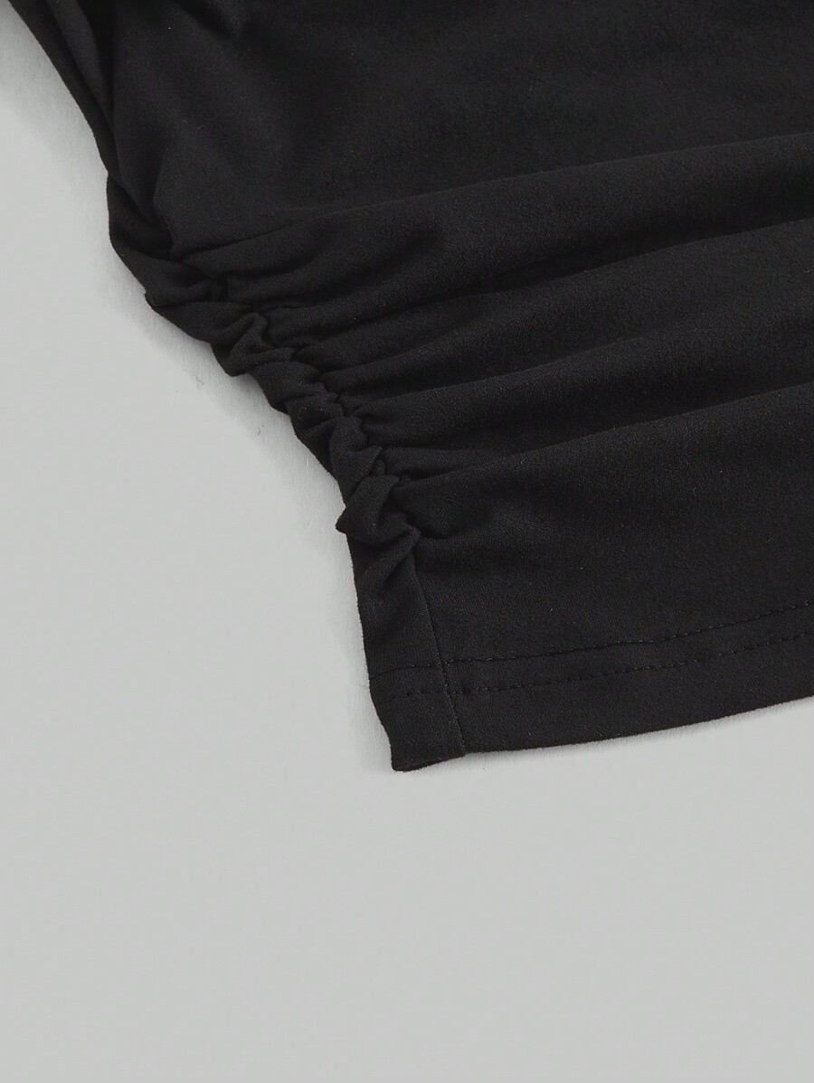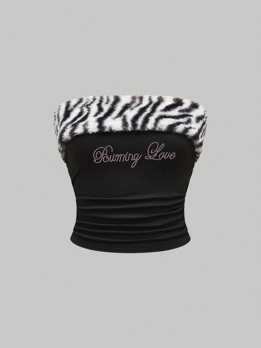 Grunge Punk Gyaru Fashionable Black Knitted Crop Top With Rhinestones And Textured Fabric Panels For Ladies, For Carnival