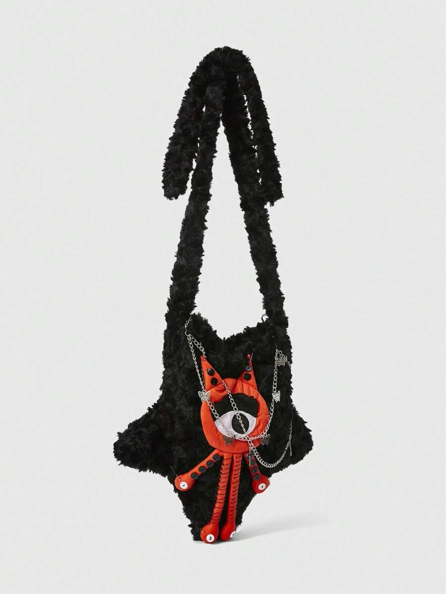 Grunge Punk Halloween Goth Star Fluffy Crossbody Bag With Cross Chain, Casual Y2K Edgy Punk Style Cyclops Monster Hair Fuzzy Shoulder Bag, Autumn/Winter
