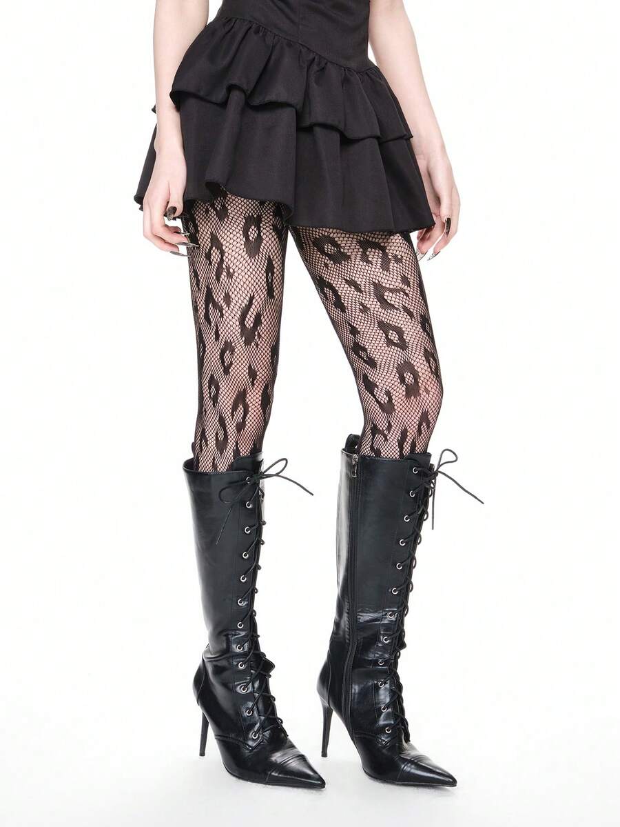 Grunge Punk High Elastic Black Leopard Print Hottie Women's Stockings/Pantyhose/Bottom Socks/Tights