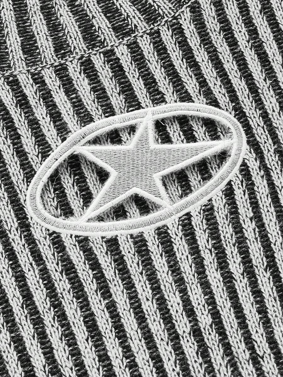 Grunge Punk Knit Short Sleeve Top With Star Pattern And Stand Collar