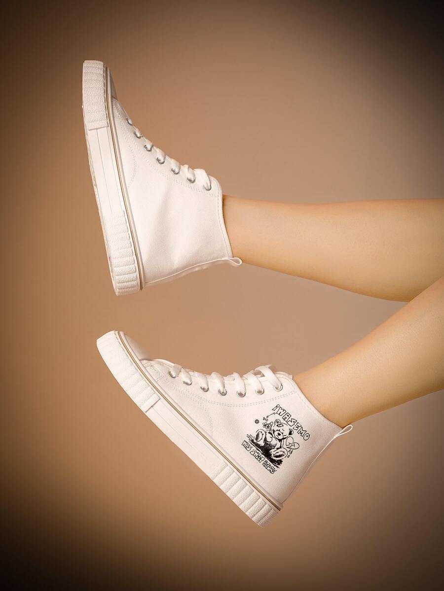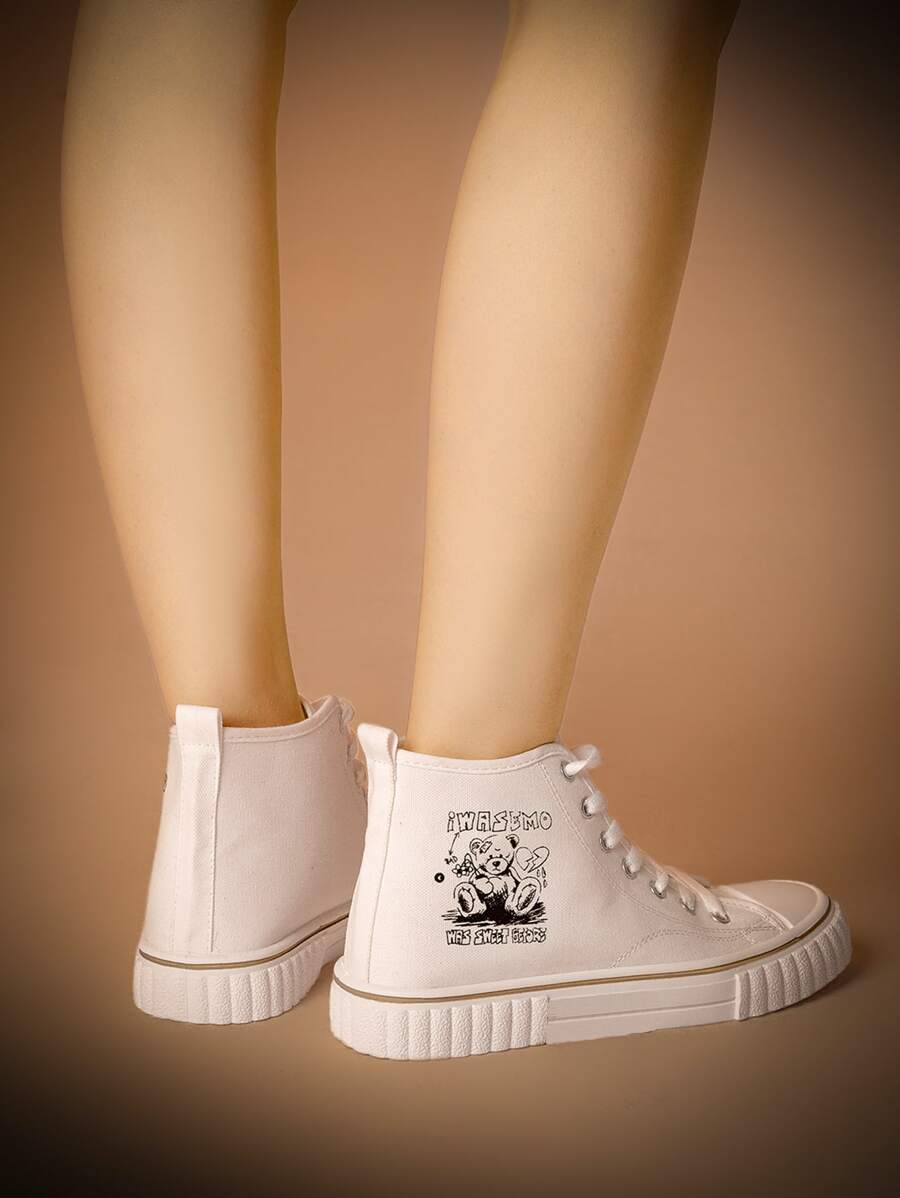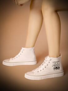 Grunge Punk Kpop Cartoon Graphic Lace Up Front Canvas Shoes