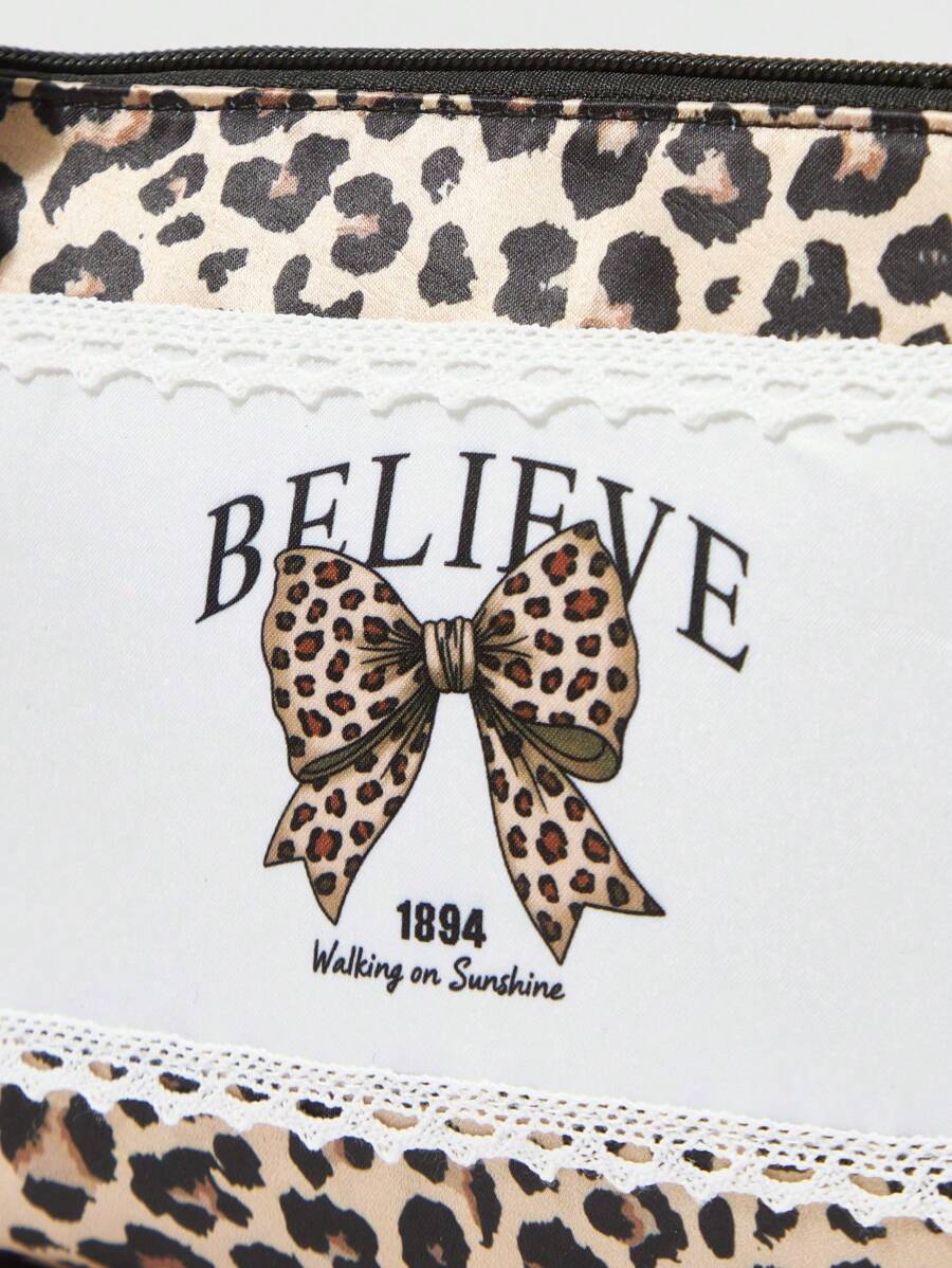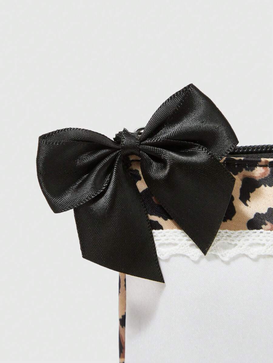 Grunge Punk Lace Trim Fashionable Leopard Print Bow Design Large Capacity Portable Women's Organizer Makeup Bag, 1288767