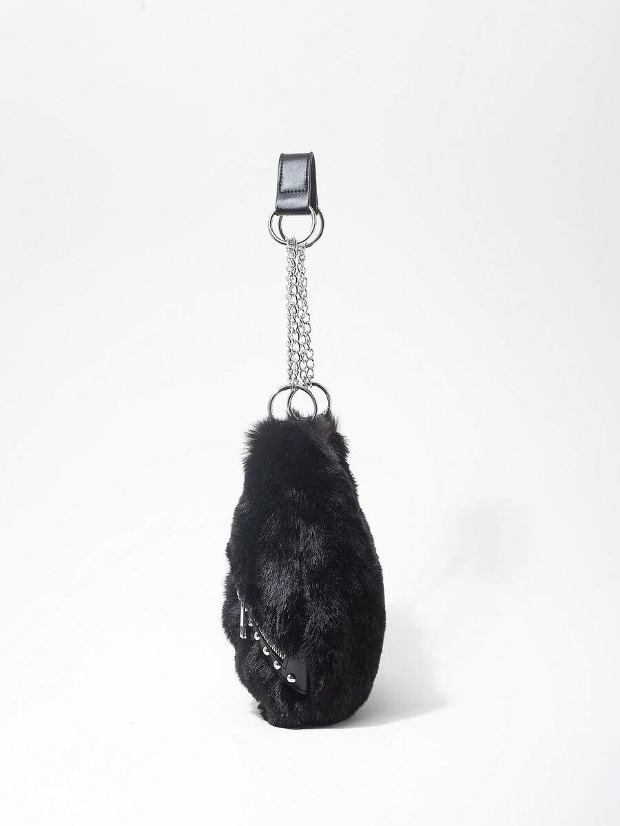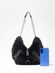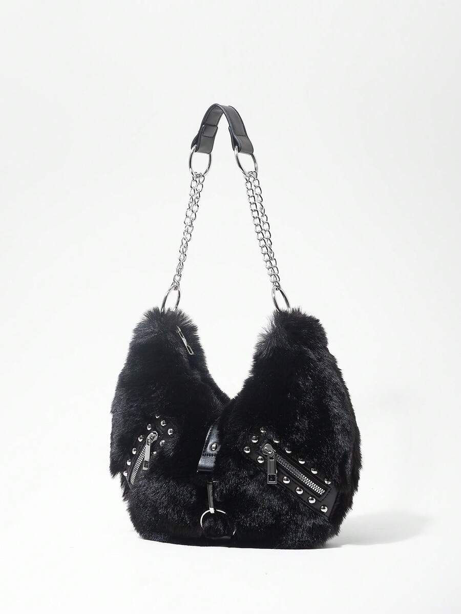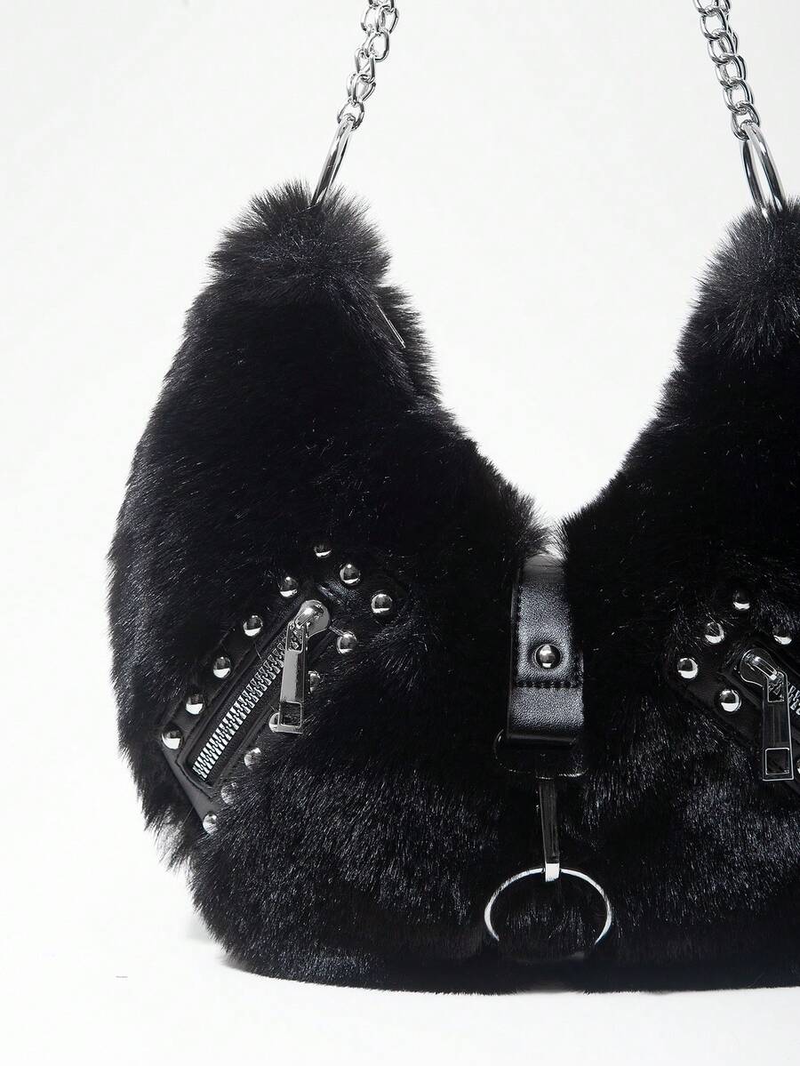 Grunge Punk Ladies, Women Shoulder Bag,Hobo Bag,Faux Fur,Fuzz,Plush Bag,Rivet,Fashionable,Personalized,Versatile,Street,Sweet And Cool Girls,Hot Girls,Punk,Y2k,Daily,Autumn And Winter(Random Pattern)