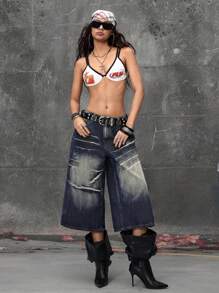 Grunge Punk Low Rise Distressed Wash Super Loose Street Style Cropped Jeans