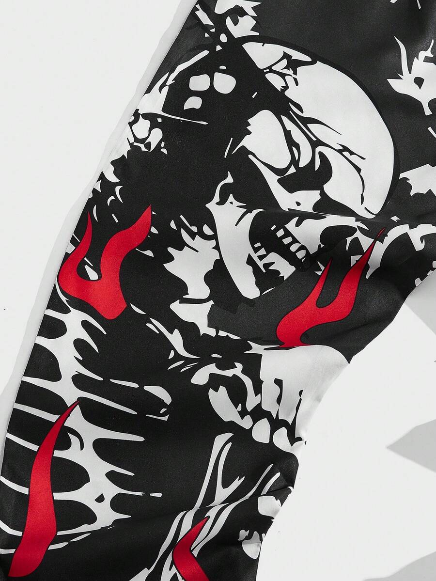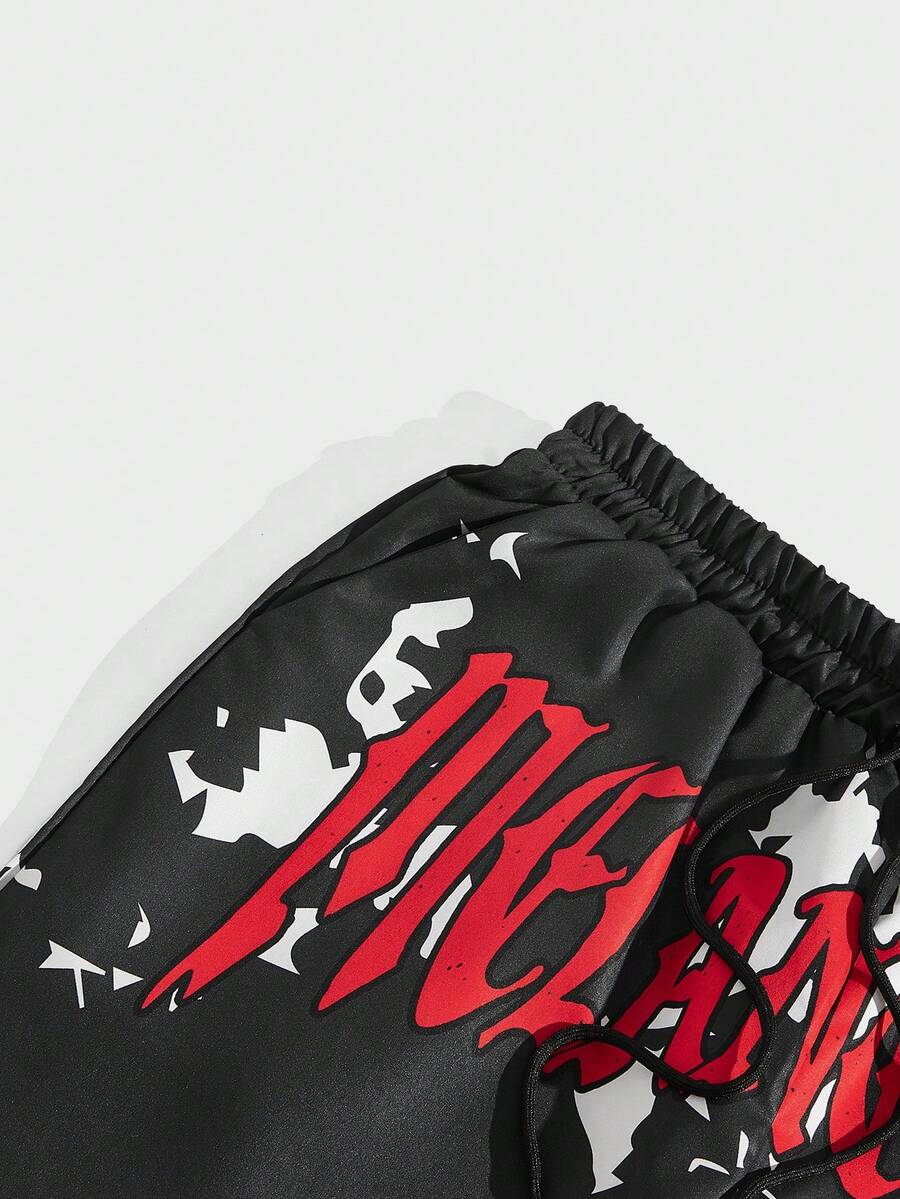 Grunge Punk Men Skeleton Letter Graphic Drawstring Waist Pants