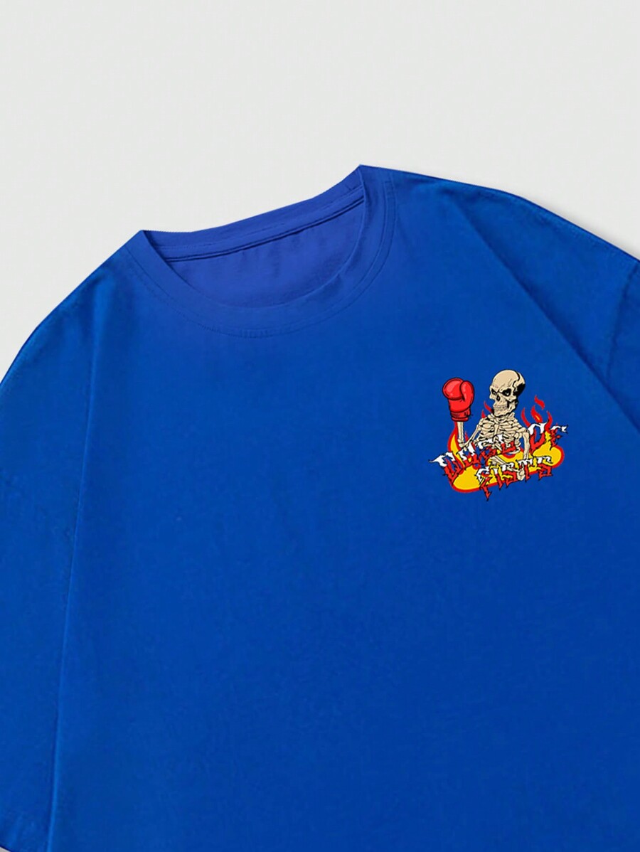 Grunge Punk Men Skull & Letter Pattern Round Neck Short Sleeve T-Shirt