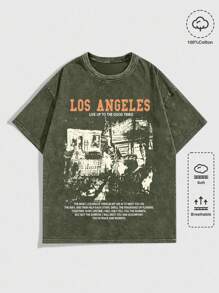 Grunge Punk Men's Casual Slogan Print Washed T-Shirt, Summer, 2000s Style