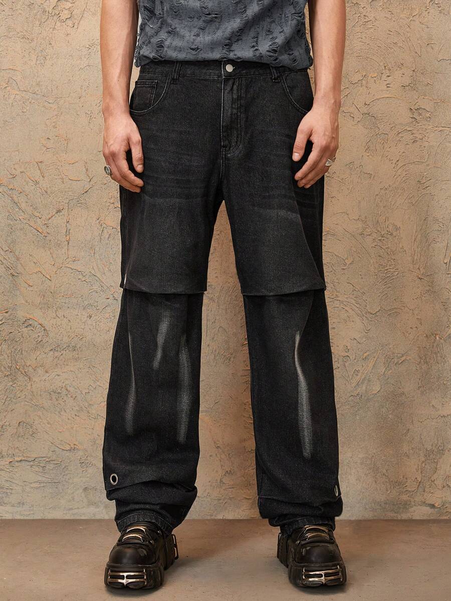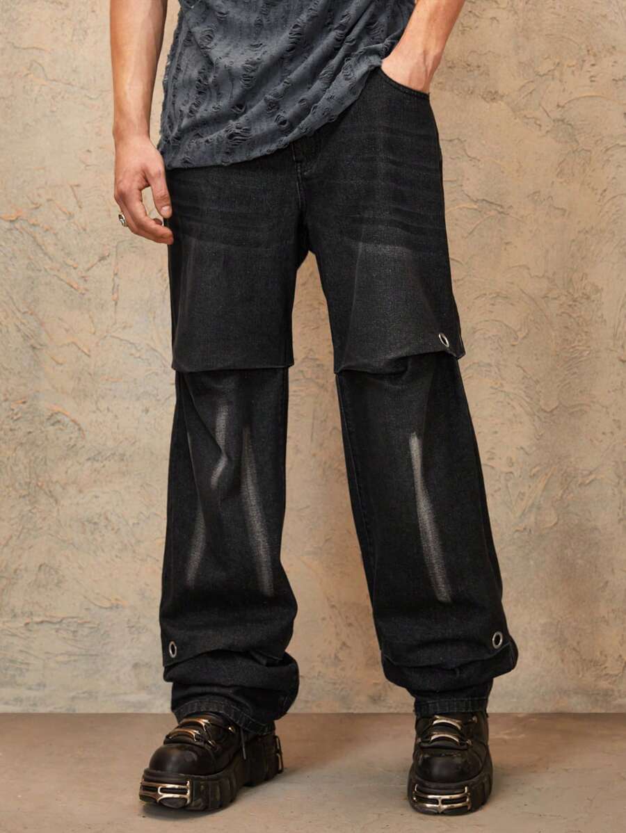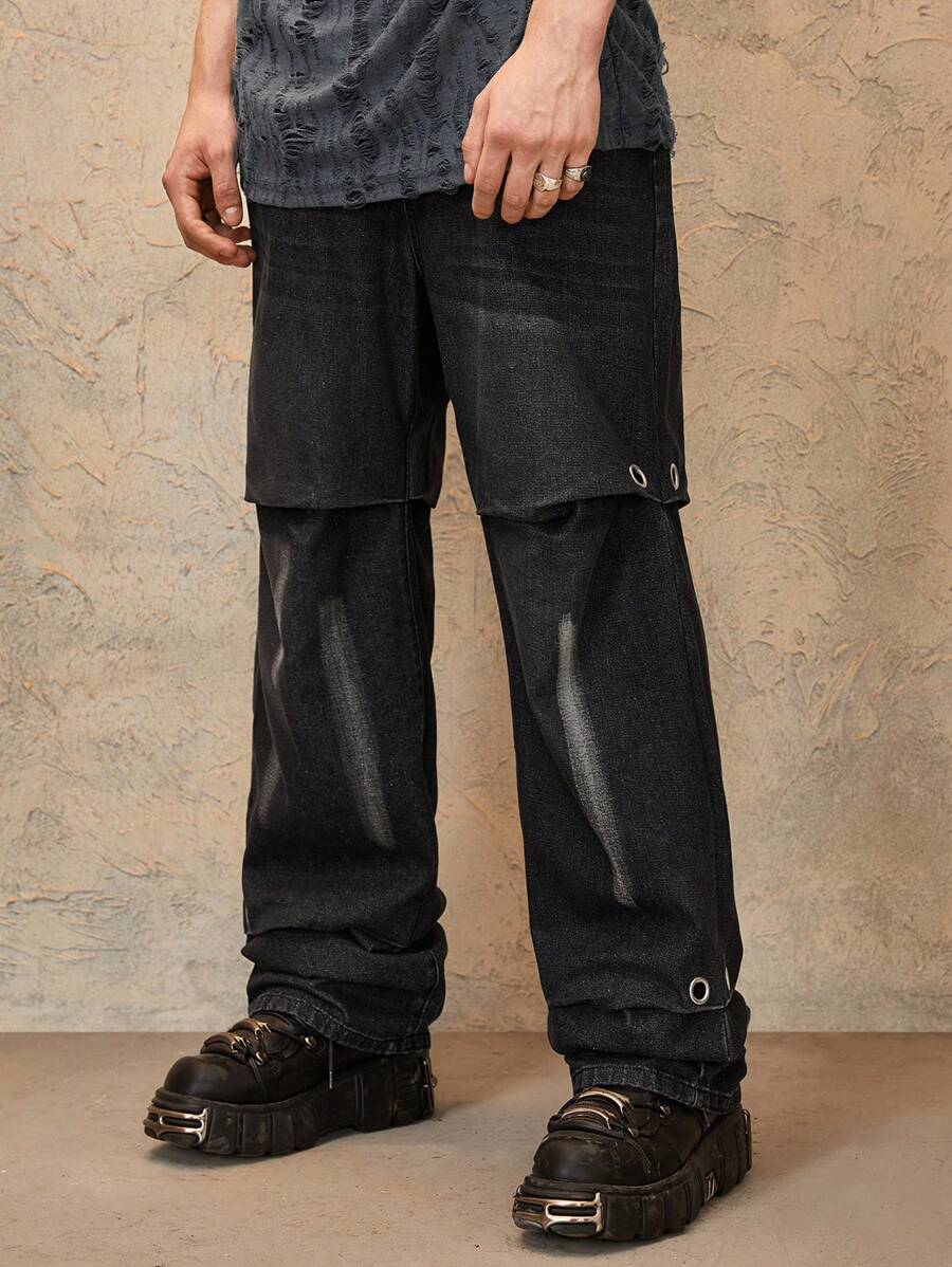 Grunge Punk Men's Casual Straight-Leg Washed Denim Jeans
