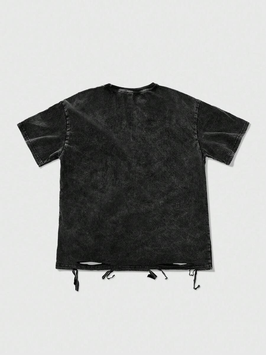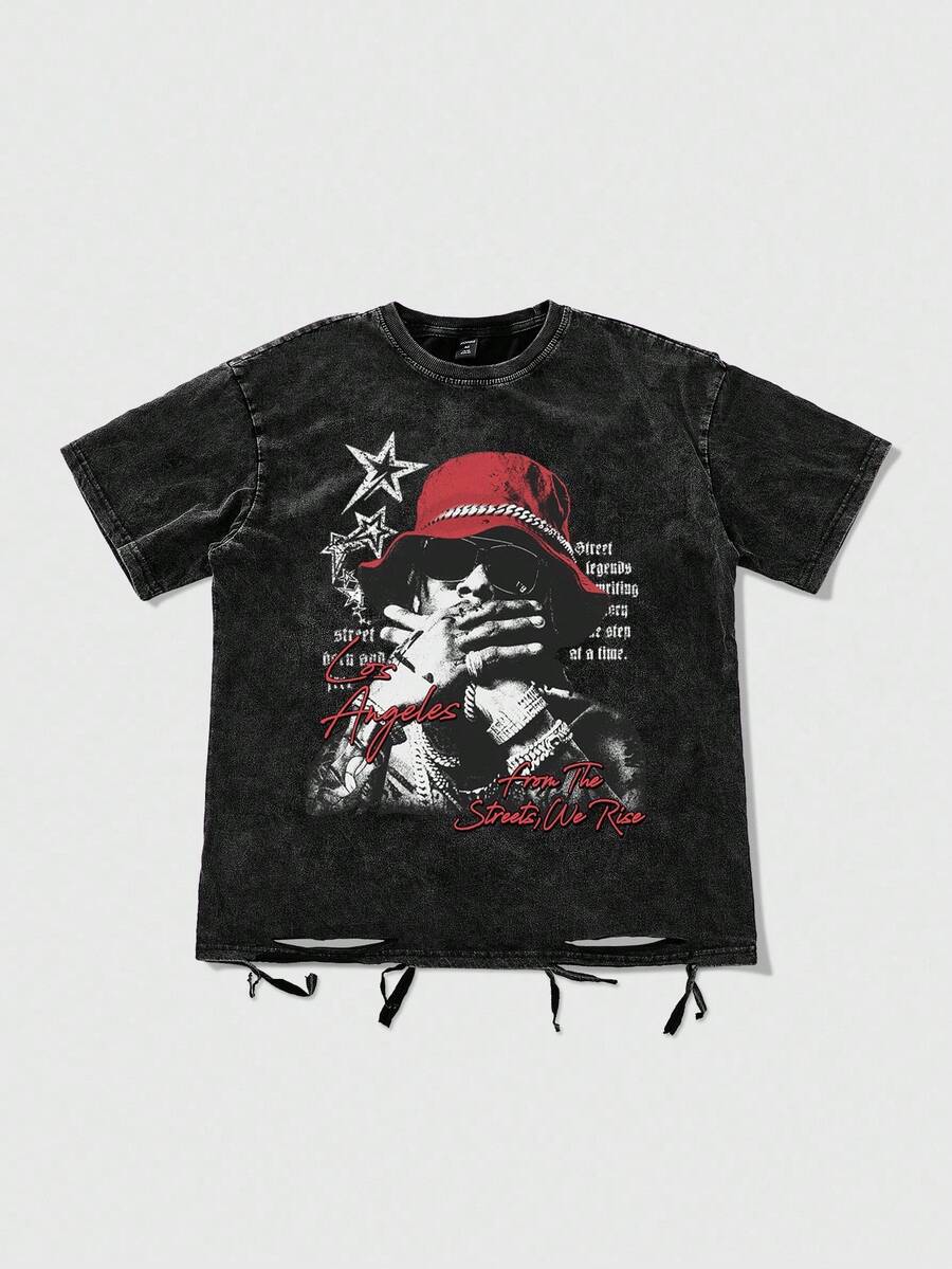 Grunge Punk Men's Character Print Street Punk Graphic Distressed T-Shirt