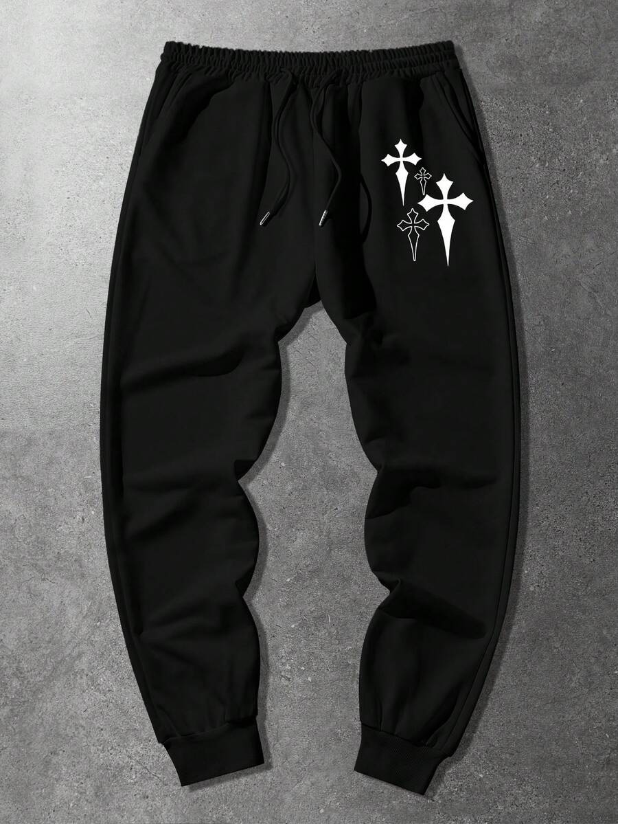 Grunge Punk Men's Cross Print Drawstring Waist Casual Sweatpants