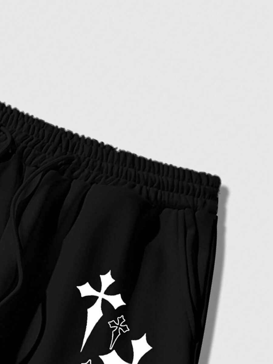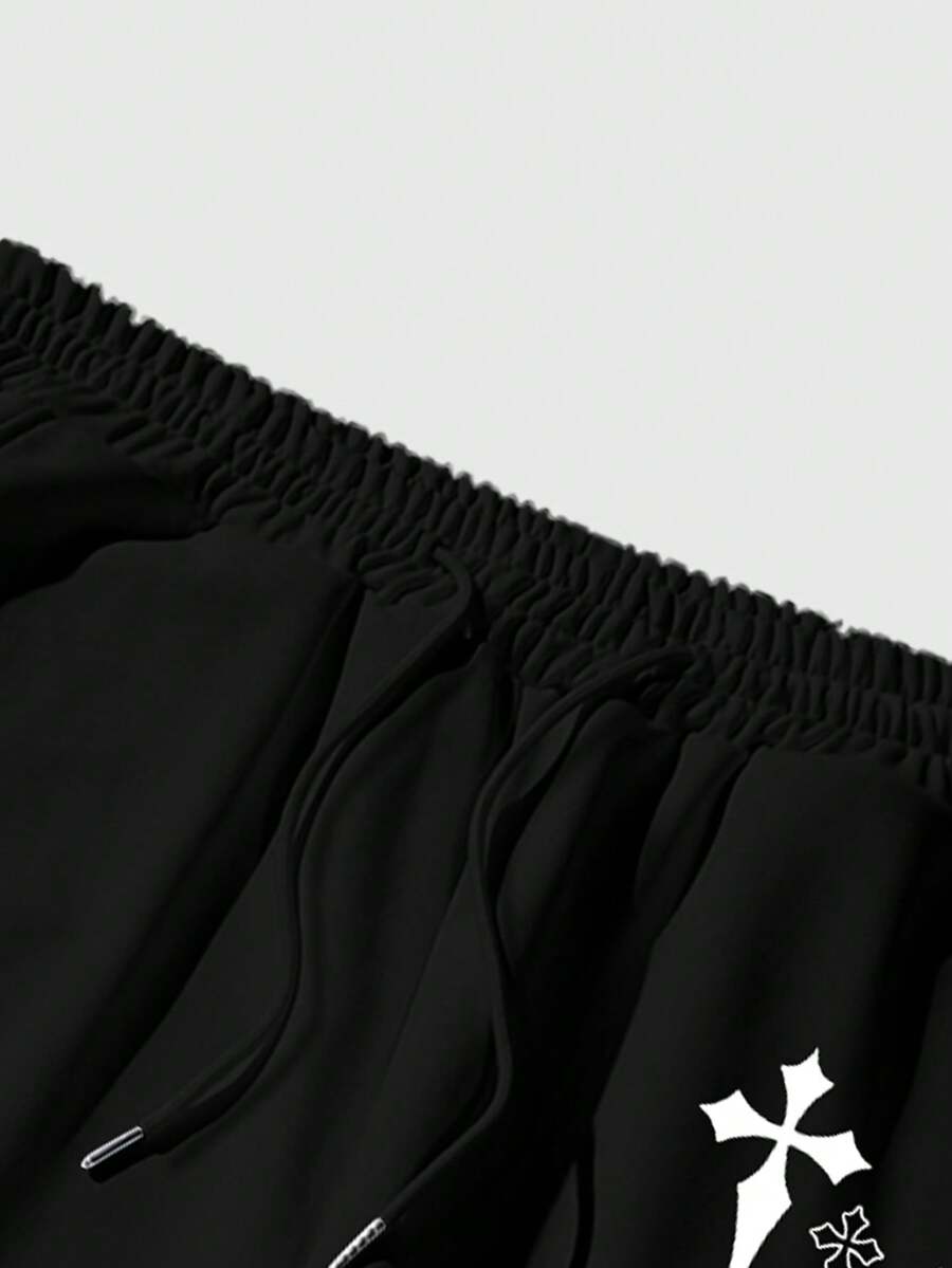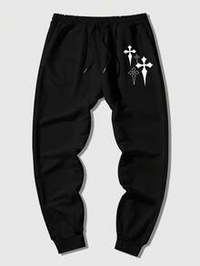 Grunge Punk Men's Cross Print Drawstring Waist Casual Sweatpants