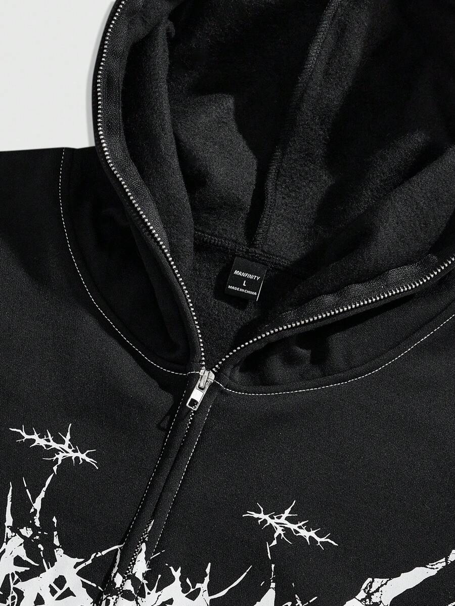 Grunge Punk Men's Gothic Letter Print Zip-Up Hooded Sweatshirt Sweatshirt, Thermal Lined For Autumn/Winter