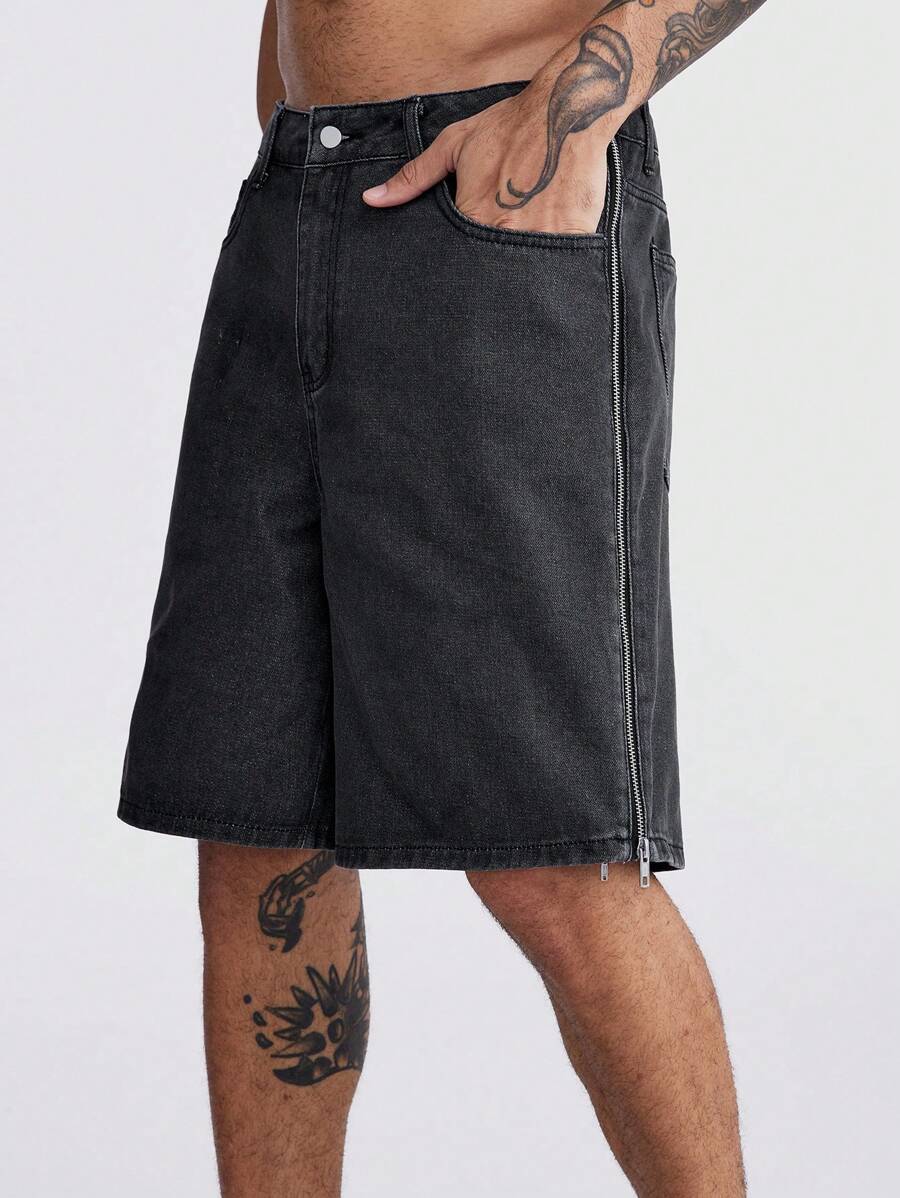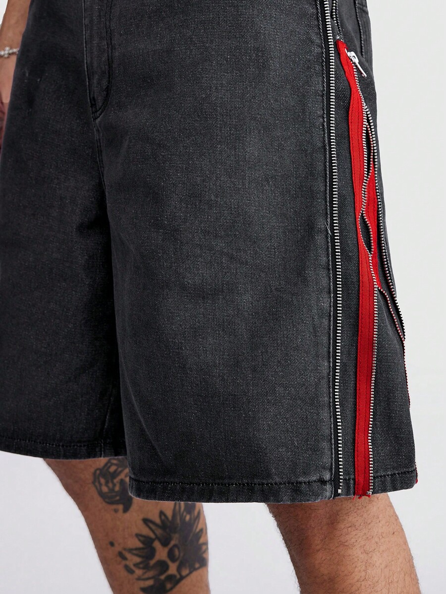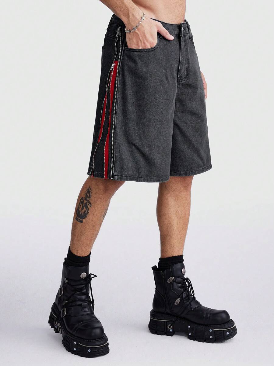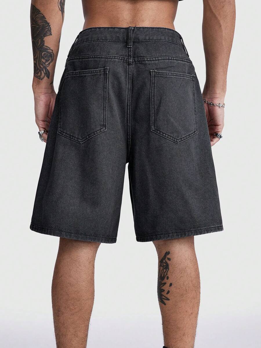 Grunge Punk Men's Loose Fit Casual Denim Bermuda Shorts With Pockets, School