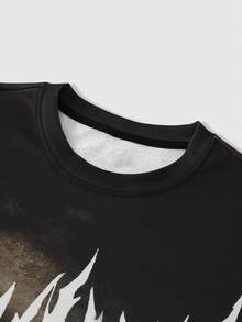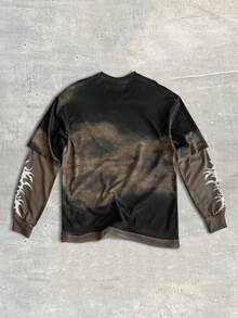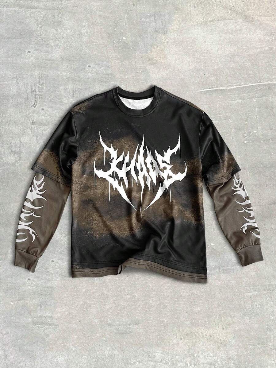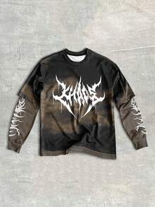 Grunge Punk Men's Minimalist Gothic Printed Crew Neck Long Sleeve T-Shirt