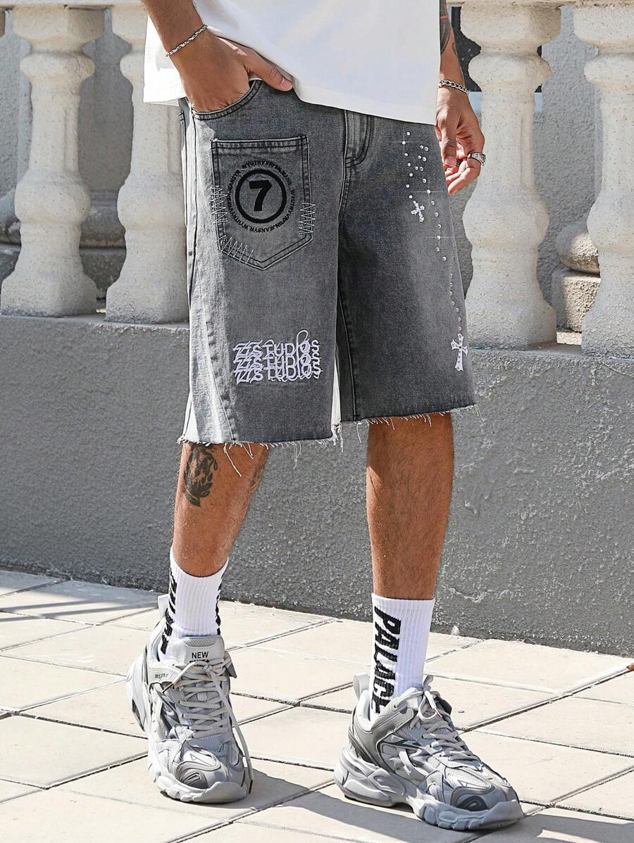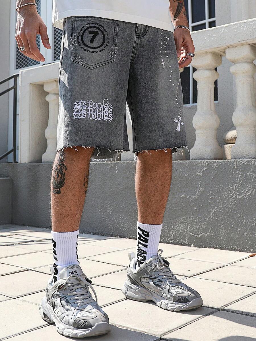 Street Life Men's Punk Chain Pattern Casual Simplistic Denim Jeans, Daily Wear