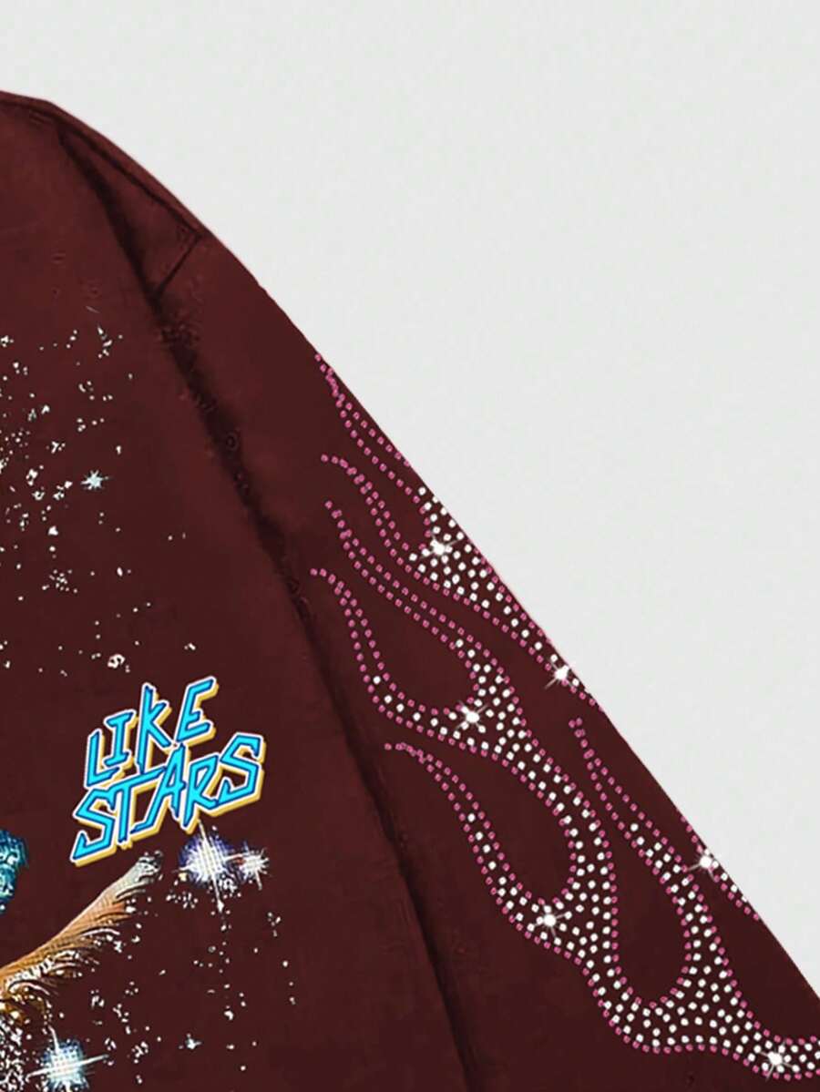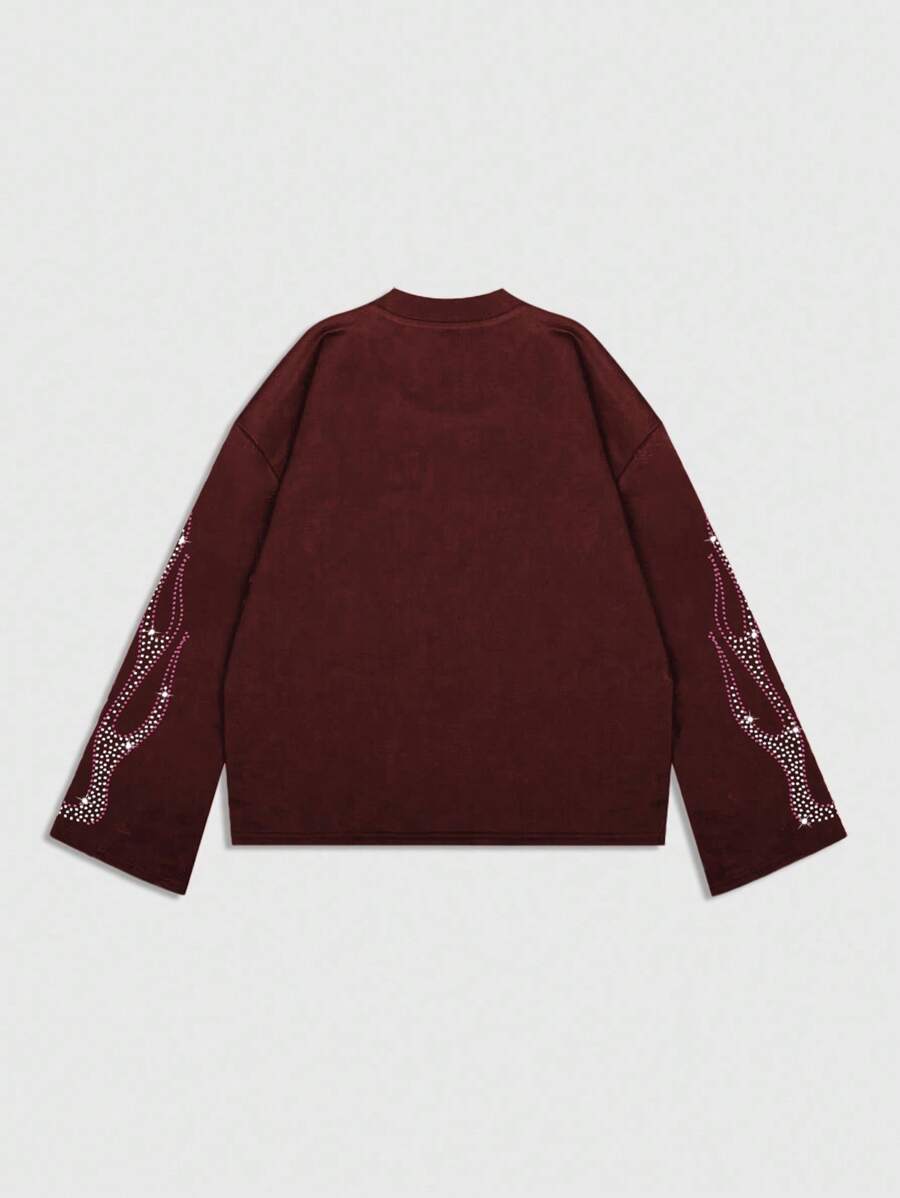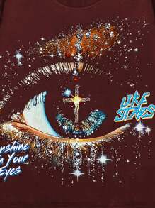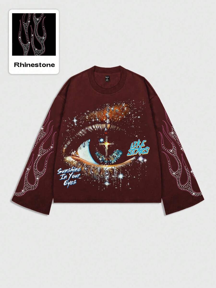 Grunge Punk Men's Sparkling Eye Print Long Sleeve T-Shirt, Loose Cropped Fit, 2000s Style