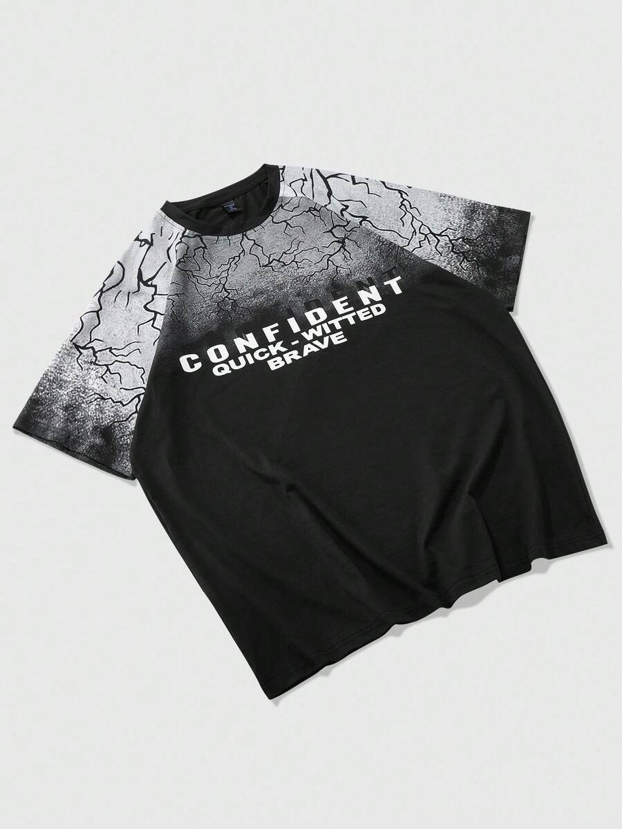 Grunge Punk Men's Street American Design Gradient Effect Print T-Shirt, Batwing Sleeve Short Sleeve, Halloween