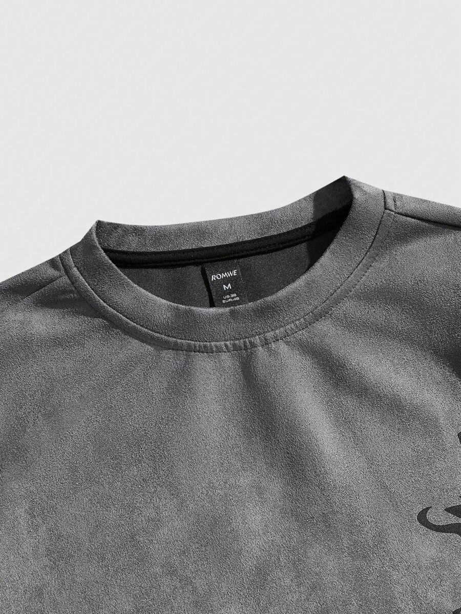 Street Life Men's Suede Round Neck Short Sleeve T-Shirt With Pentagram Pattern Detail, Casual & Minimalist