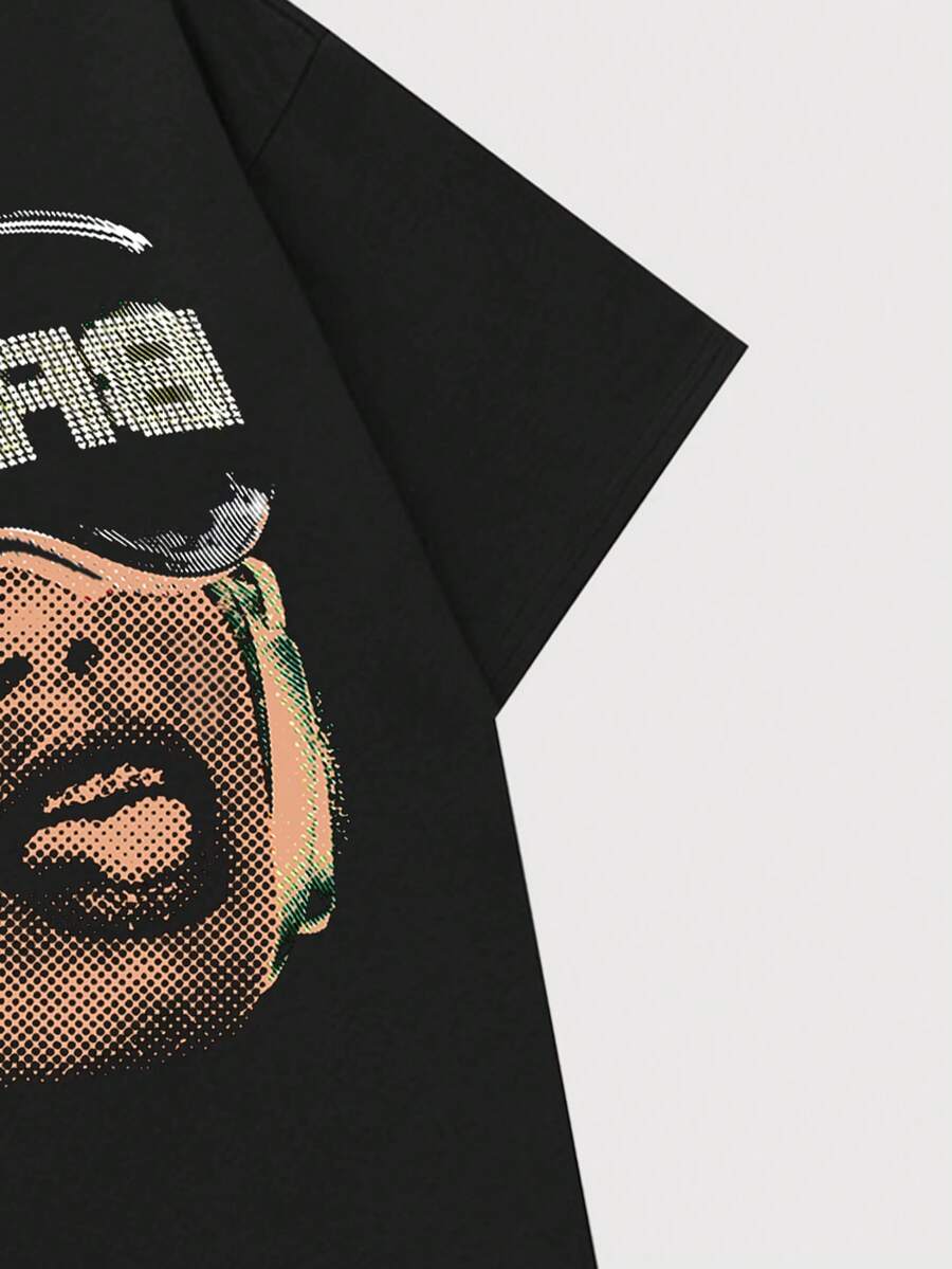 Grunge Punk Men's Summer Casual Short Sleeve T-Shirt With Letter And Character Print, School