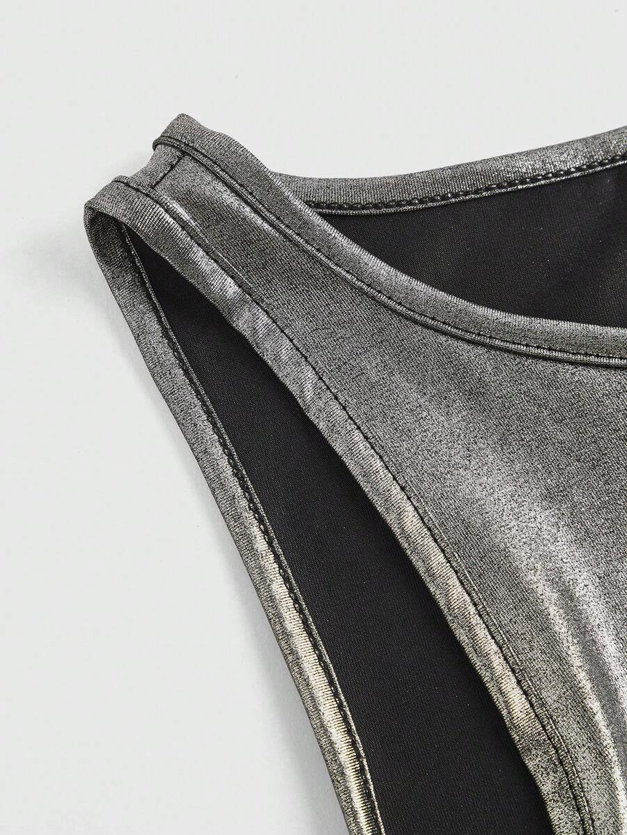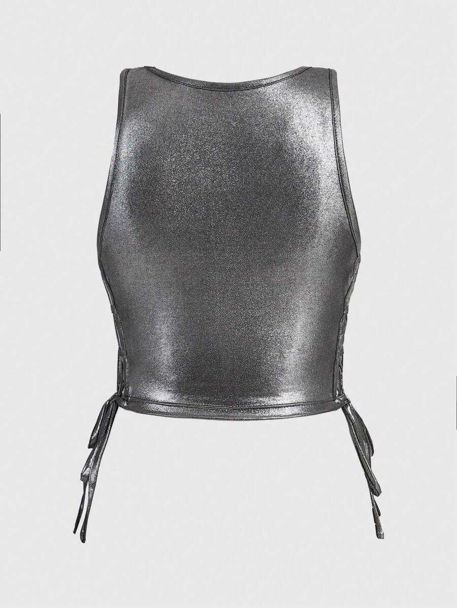 Grunge Punk Music Festival Y2K Style Sleeveless Crop Top For Women, Casual Spring/Summer Metallic Sequin Star Design With Side Tie