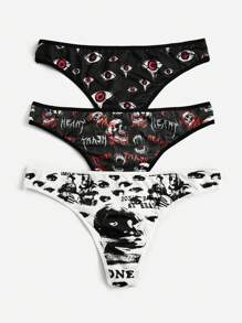 Grunge Punk Plus 3pack Eye & Skull Graphic Panty Set