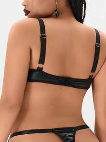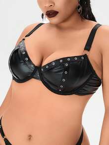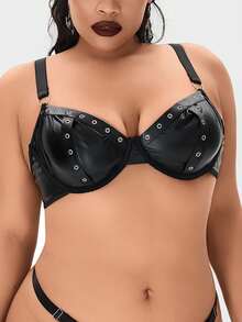 Grunge Punk Plus Size Dark Punk Bandeau Bra With Eyelets, Steel Rings And Invisible Straps