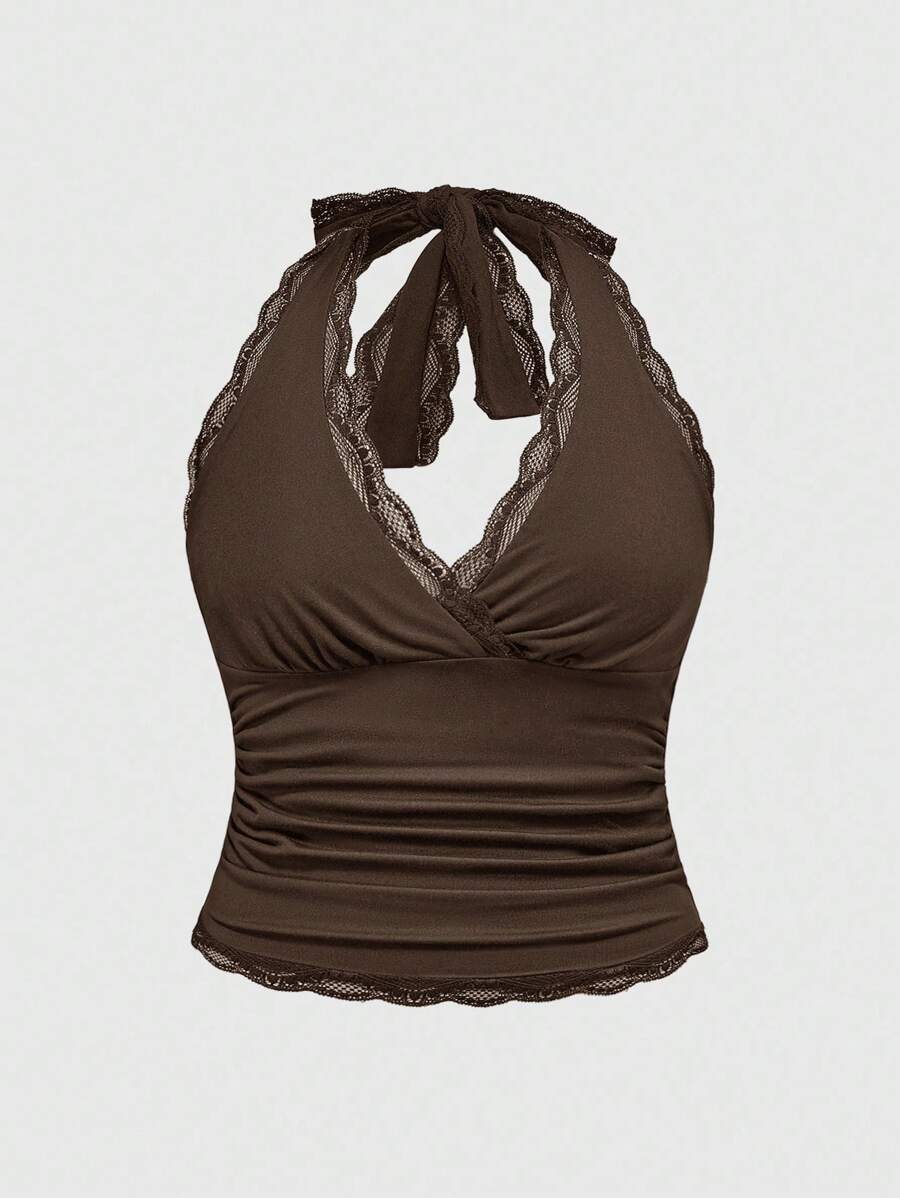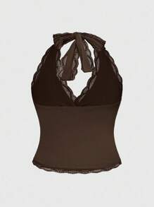 Grunge Punk Plus Size Women's Lace Trim Y2K Backless Halter Top