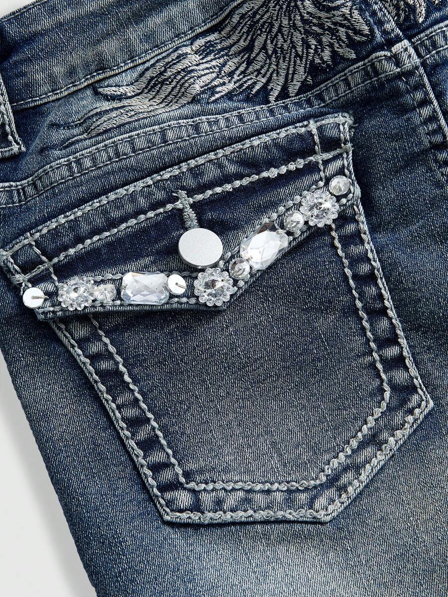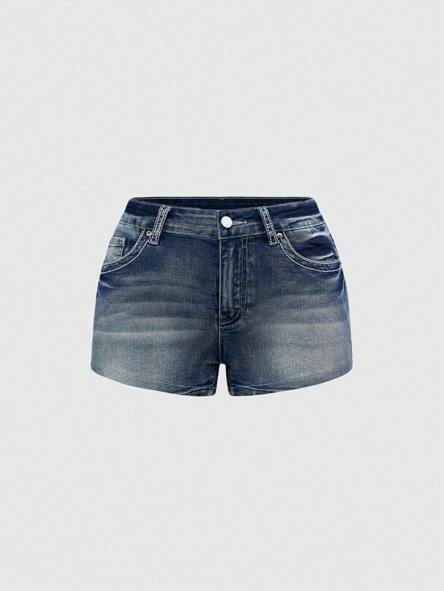 Grunge Punk Plus Summer Y2K Rhinestone Wing Embroidered Low-Waist Shorts