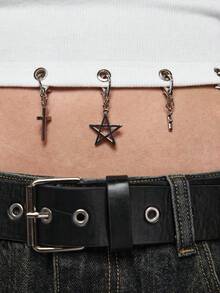 Grunge Punk Punk Metal Grommet Cross & Pentagram English Pendant Tight Fit Women Tank Top