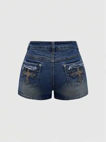 Grunge Punk Punk Style Cross Patch Embroidery Low Waist Denim Shorts For Women, School