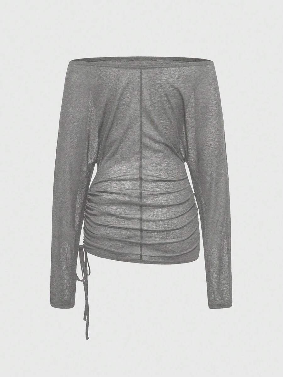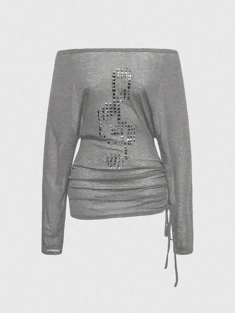 Grunge Punk Punk Style Cross Rivet Off-Shoulder Women Long Sleeve T-Shirt Top