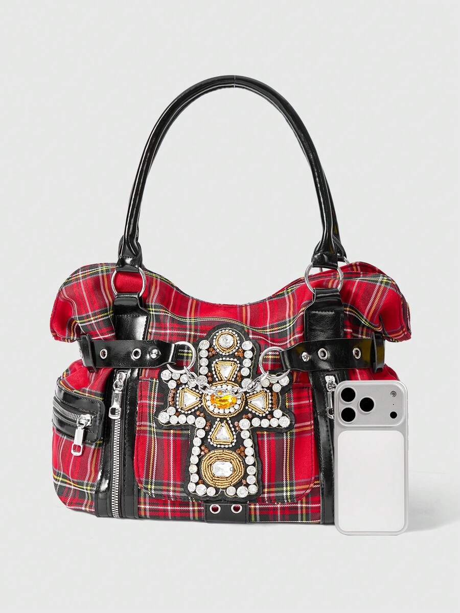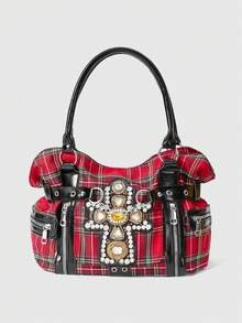 Grunge Punk Punk Style Cross Zipper Design Large Capacity Tote Bag