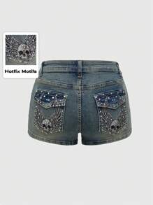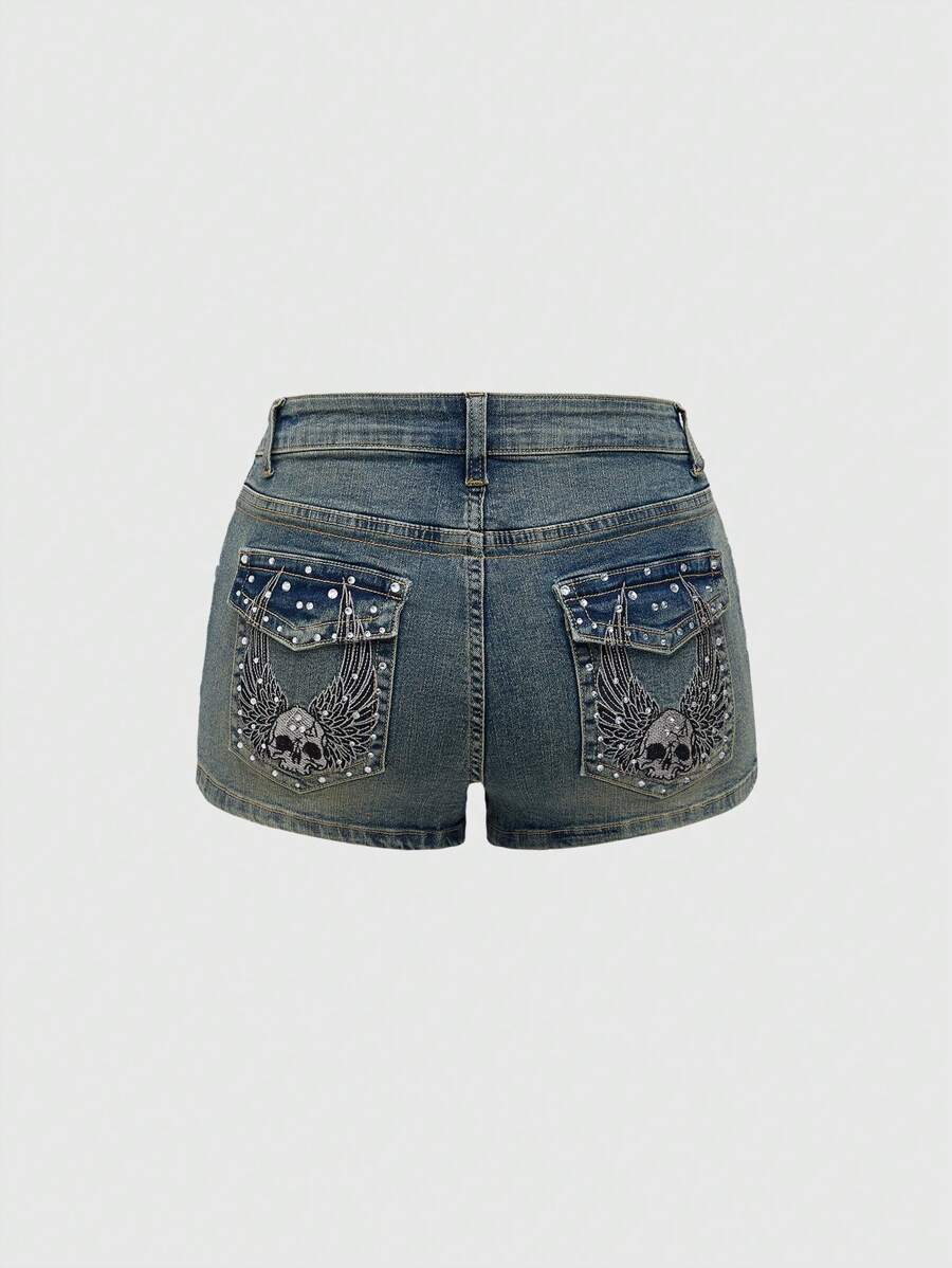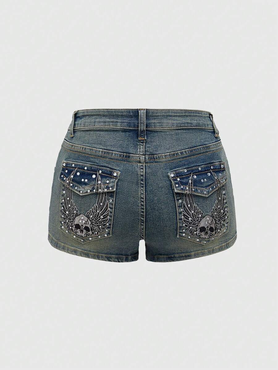 Grunge Punk Punk Style Skull Rhinestone Embroidery Women's Mini Slim Shorts For Ladies, School