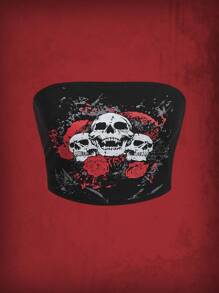 Grunge Punk Skull & Floral Graphic Crop Tube Top