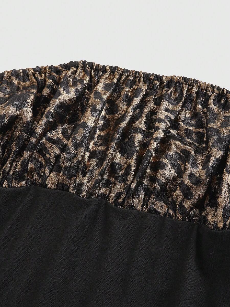 Grunge Punk Slim Fit Off-Shoulder Leopard Print Blouse