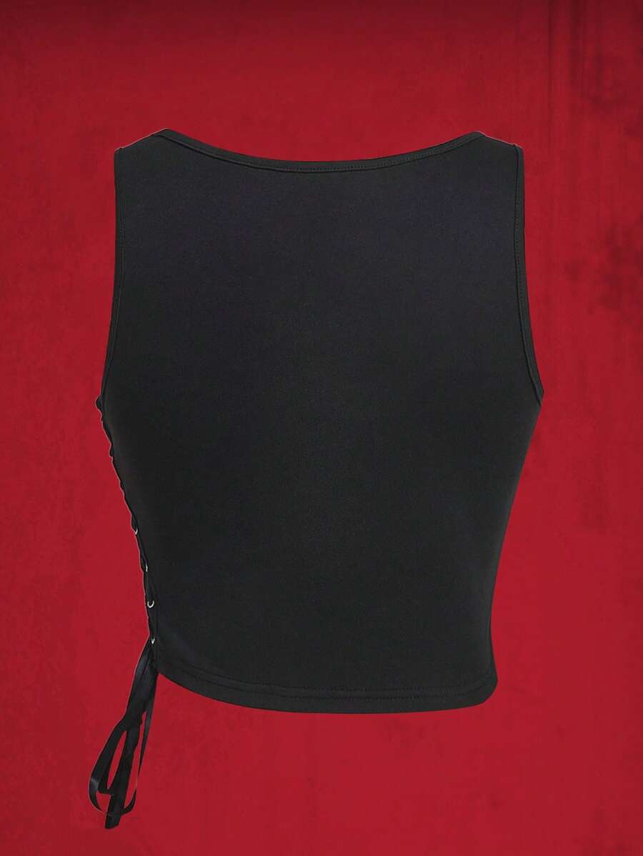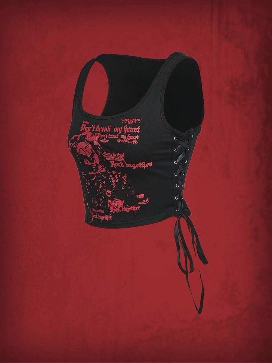 Grunge Punk Women's Funny Printed Criss-Cross Strap Tank Top