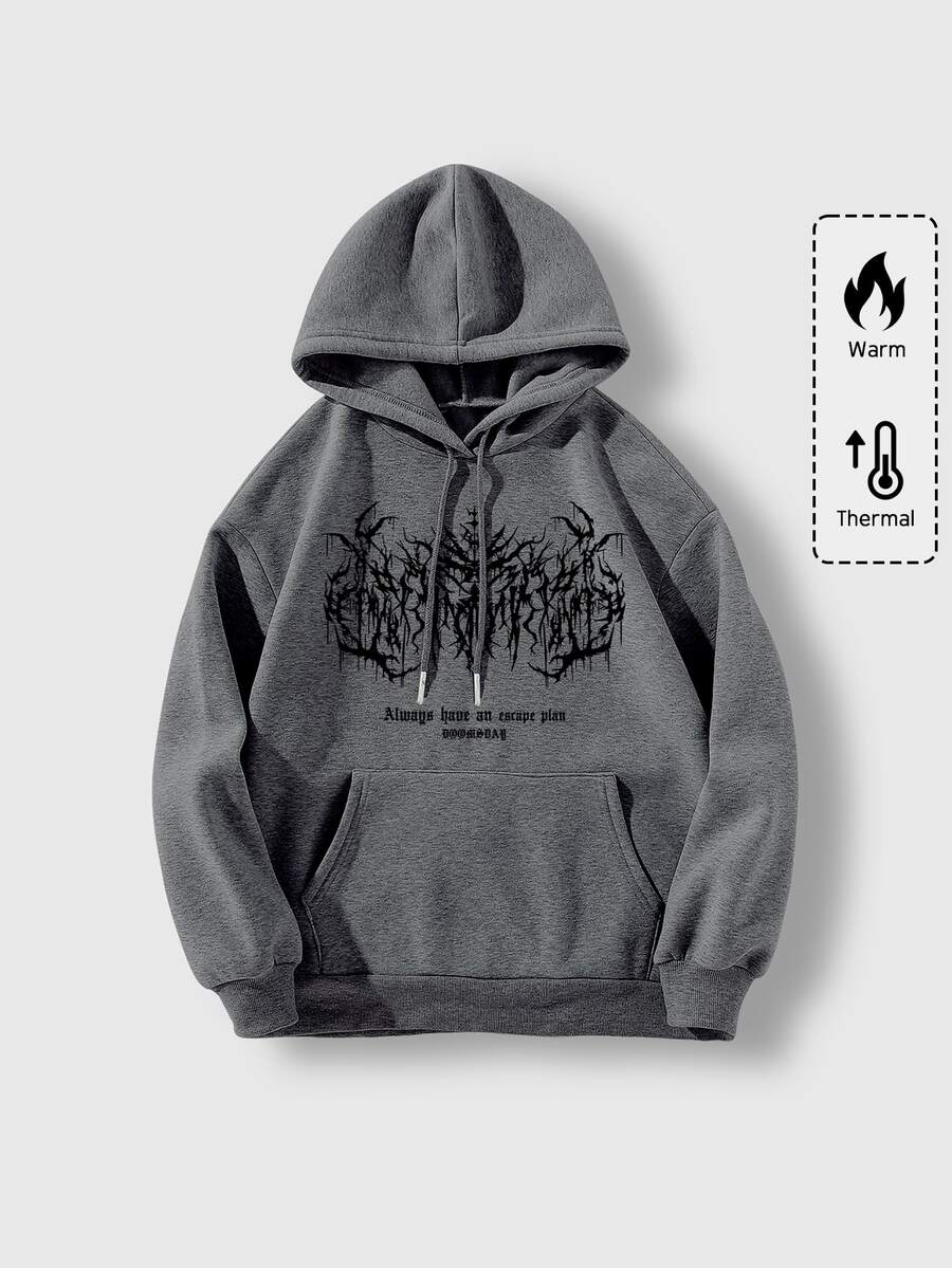 Grunge Punk Slogan Printed Fleece Hoodie With Drawstring Always Have An Escape Plan Graduation,Back To School Outfits,Graduation,Teacher Outfits For Women,Back To School
