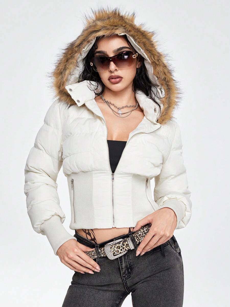 Grunge Punk Snow Y2K Gyaru Sexy Cropped Zip-Up Hooded Padded Coat For Women
