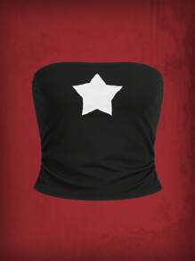 Grunge Punk Star Patched Ribbed Tube Top