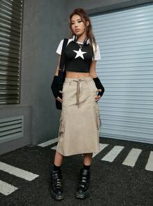 Grunge Punk Star Print Raglan Sleeve Crop Tee