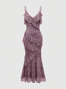 Grunge Punk Subculture Leopard Print Sexy Ruffled Slip Dress For Women
