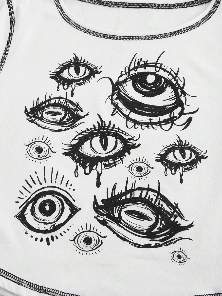 Grunge Punk Summer Outfits For Women, Casual Punk Eye Pattern Colorblock Design T-Shirt