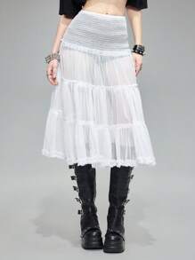 Grunge Punk Summer Street-Style Beige Cake-Shaped Mesh Tutu Skirt With Lining